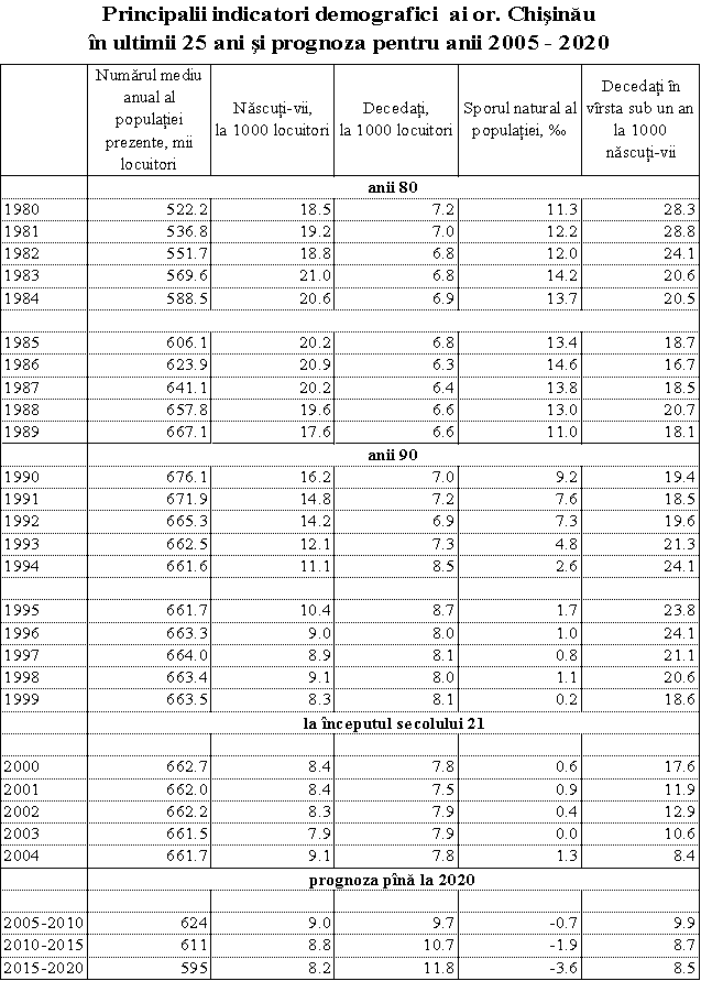 numărul populației Chișinăului către anul 2020 va mai mic, decît în anul 1990,