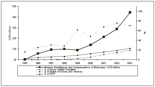 Probabil că statul a fost nepregătit să folosească rațional aceste resursele financiare. O mare parte din aceste venituri, în gospodăriile migraților, se folosește pentru consum curent și doar 10-12% la investiții de familie ca educația copiilor, procurarea locuințelor, pământului și afacerii începătoare. La nivel de stat încă întârzie crearea unui mecanism de acumulare a acestor mijloace pentru investire. În același timp, este clară influența acestor bani la majorarea consumului și mărirea importului (în 2003 el a depășit exportul de 1.7 ori), devalorizarea valutei și influența asupra prețurilor.
