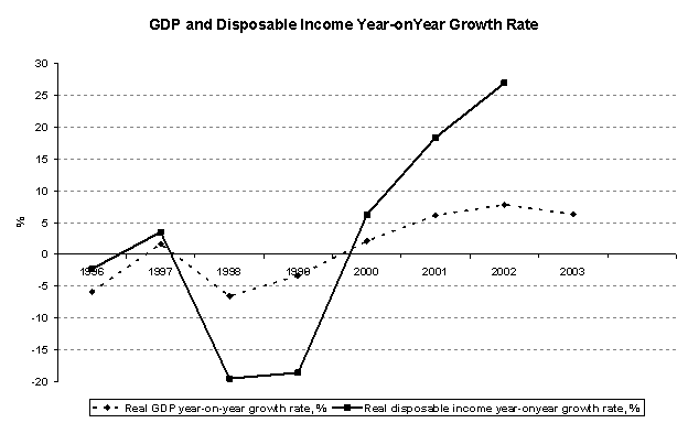 Conform datelor Departamentului de Statistică, în anul 2000 este observată o creștere bruscă a ritmului de majorare a veniturilor disponibile în comparație cu ritmul de creștere a PIB-ului (vezi Boxa 6). Acestea sunt datele în mediu pe Republică. Din păcate acest flux de mijloace bănești până în prezent puțin a influențat reducerea sărăciei și înlăturarea inegalității.